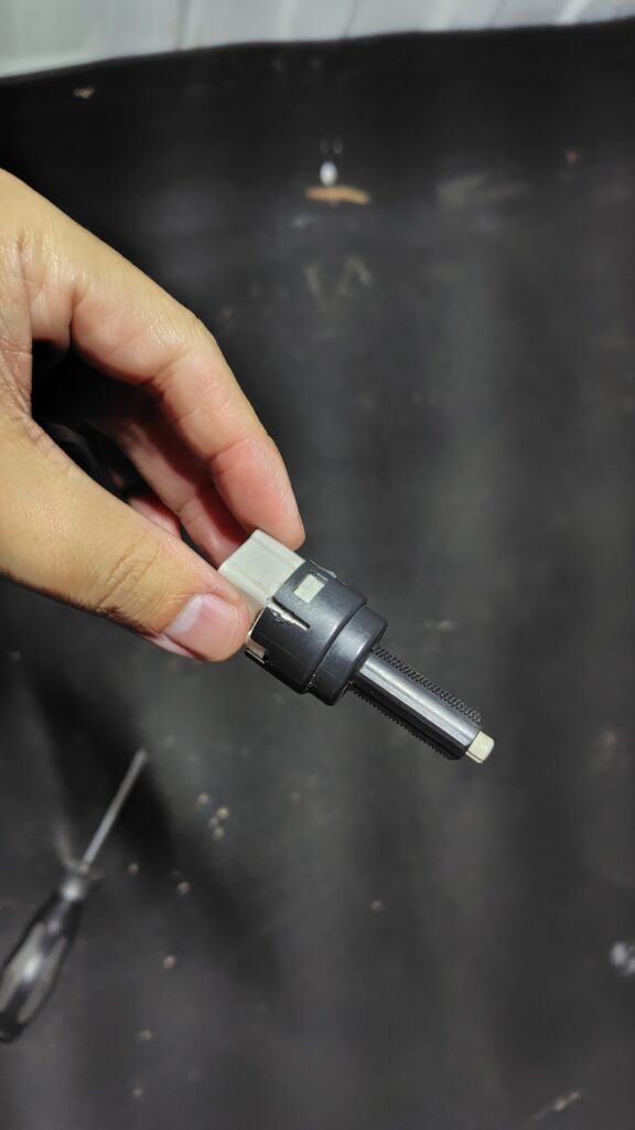 このスイッチは、押さえた状態が消灯。戻した状態で、ブレーキランプが点灯するといった仕組みになっています。