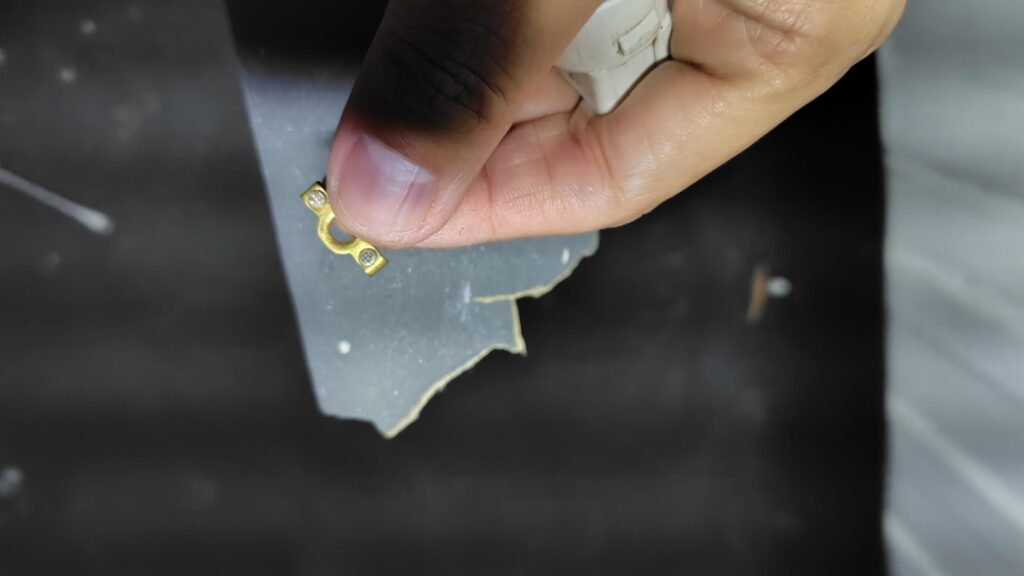 どうにかしっかり固定したら良いので、私は、小さい平ギボシ金具を切り取りそれを挟み込みました。
