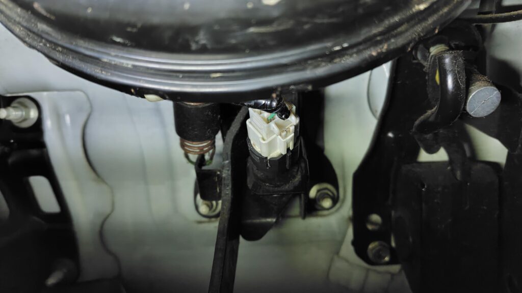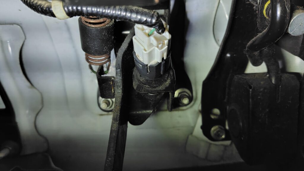 ブレーキペダルの奥にある、結構簡単な仕組みのブレーキスイッチになります。