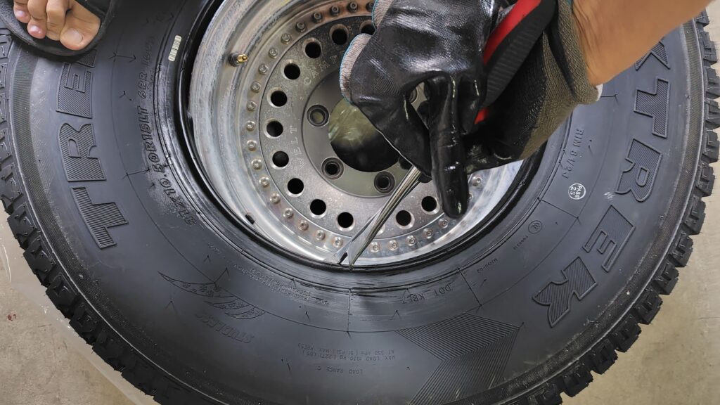 ここから、タイヤレバーを使ってタイヤを履かせていきます。